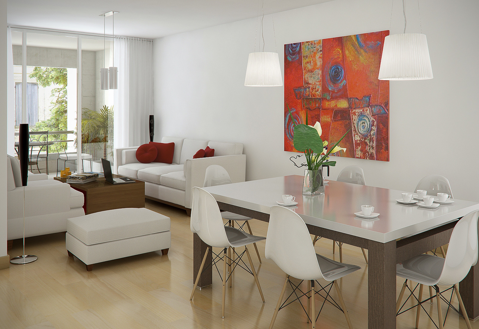 Modelado e iluminación 3d max vray, solo el sector living, preparado para render fijo hacia balcón.